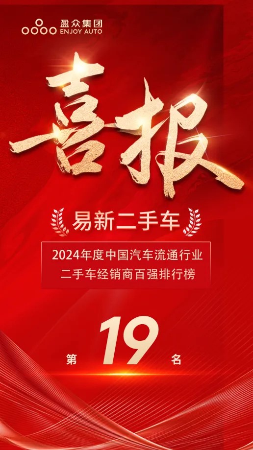 11月6-8日,2024中國汽車流通行業(yè)年會暨博覽會在蘇州舉行。在“渡困境 謀變局 啟新篇”主題引領(lǐng)下,此次會議集結(jié)業(yè)界精英、權(quán)威專家與領(lǐng)軍企業(yè),旨在深入剖析當(dāng)前市場環(huán)境下的機(jī)遇與挑戰(zhàn),共謀未來發(fā)展新策略。 會上還公布了2024年度中國汽車流通行業(yè)二手車經(jīng)銷商百強(qiáng)排行榜,盈眾旗下易新二手車再次上榜,榮膺百強(qiáng)企業(yè)第19名。