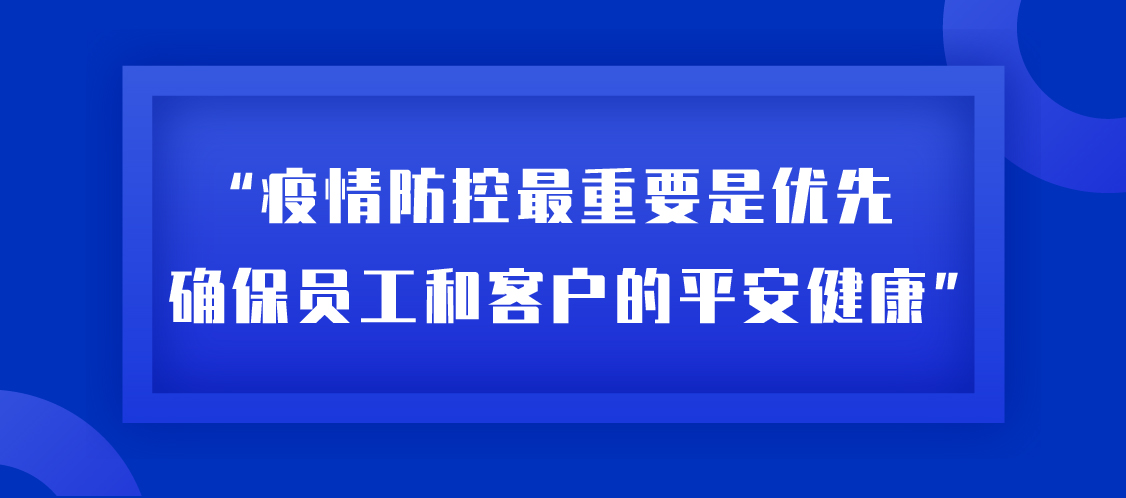 張總多次對(duì)工作小組強(qiáng)調(diào):“疫情防控最重要是優(yōu)先確保員工和客戶的平安健康”。陳主任表示,基層一線是對(duì)外服務(wù)的窗口,是防控工作重中之重,集團(tuán)全體同仁多一分擔(dān)當(dāng),員工的安全就多一分保障,我們的客戶和家人就多一分安康。