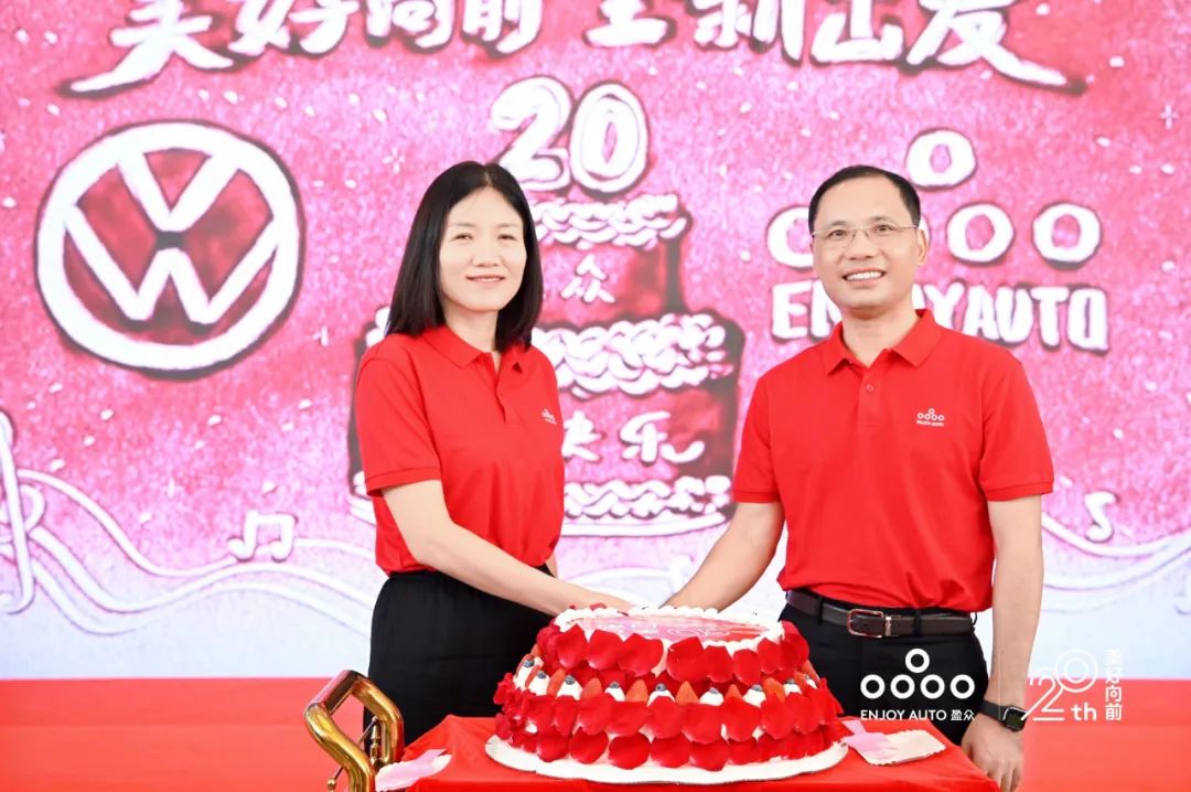 在緩緩奏起的生日祝福樂曲聲中,一汽-大眾華南區(qū)總經(jīng)理竇繪娟與盈眾控股集團董事長張桂陽一起切下生日蛋糕,與現(xiàn)場嘉賓共祝盈眾20歲生日快樂,祝福盈眾與一汽-大眾繼續(xù)譜寫新的篇章、創(chuàng)造新的輝煌。